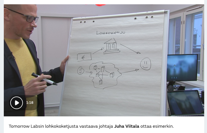 Uskoisin, että lohkoketju terminä tulee poistumaan, eikä loppukäyttäjä näe, että jokin asia on tehty lohkoketjun päälle. Siitä tulee vain ”tavallista internetteknologiaa”, Juha Viitala sanoo.” Lue koko juttu.